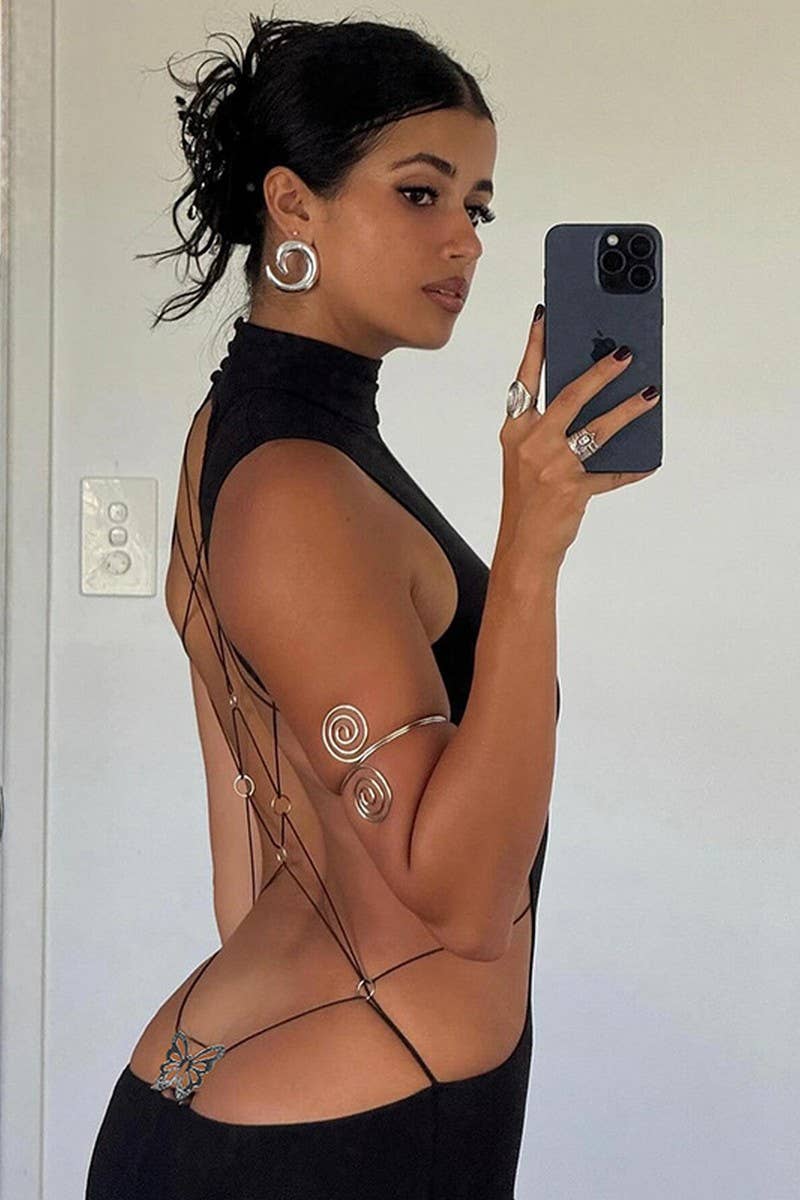 SOLID COLOR BACKLESS BOW SLIM FIT HOT GIRL DRESS