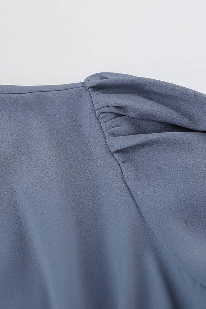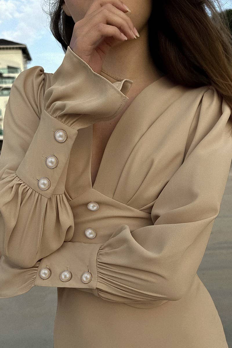 LANTERN SLEEVE V-NECK RETRO SLIM DRESS