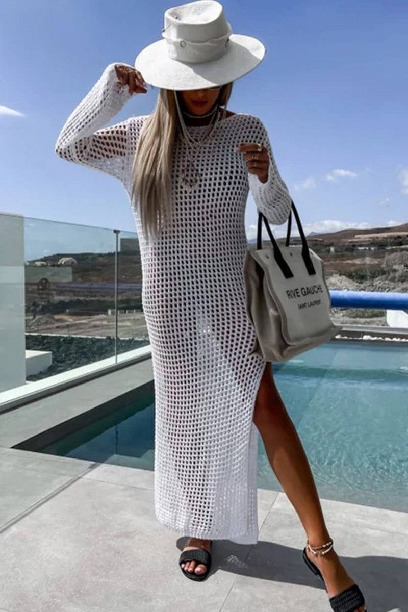 KNITTED HOLLOW BEACH BIKINI COVER-UP DRESS