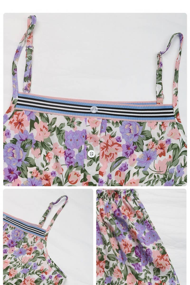 PLEATED PRINTED RUFFLED SUSPENDER DRESS