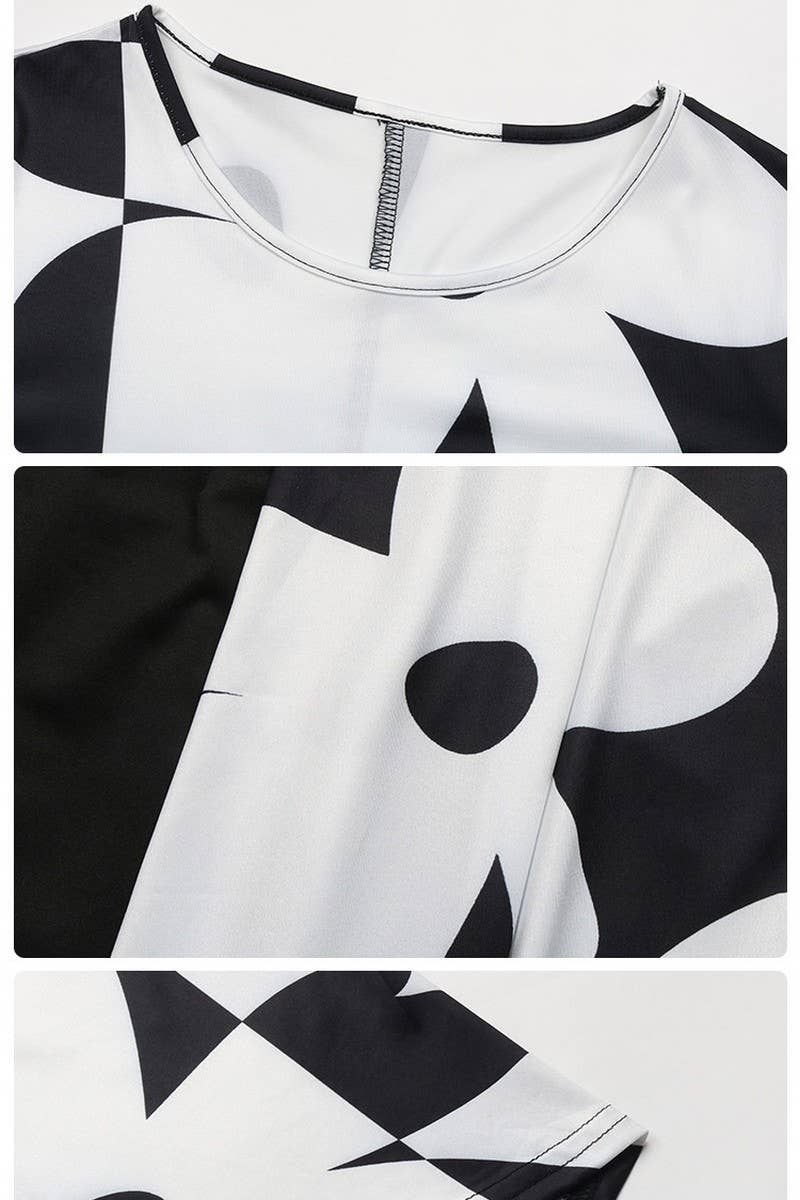 AUTUMN IRREGULAR PATTERN ROUND NECK SLIM DRESS