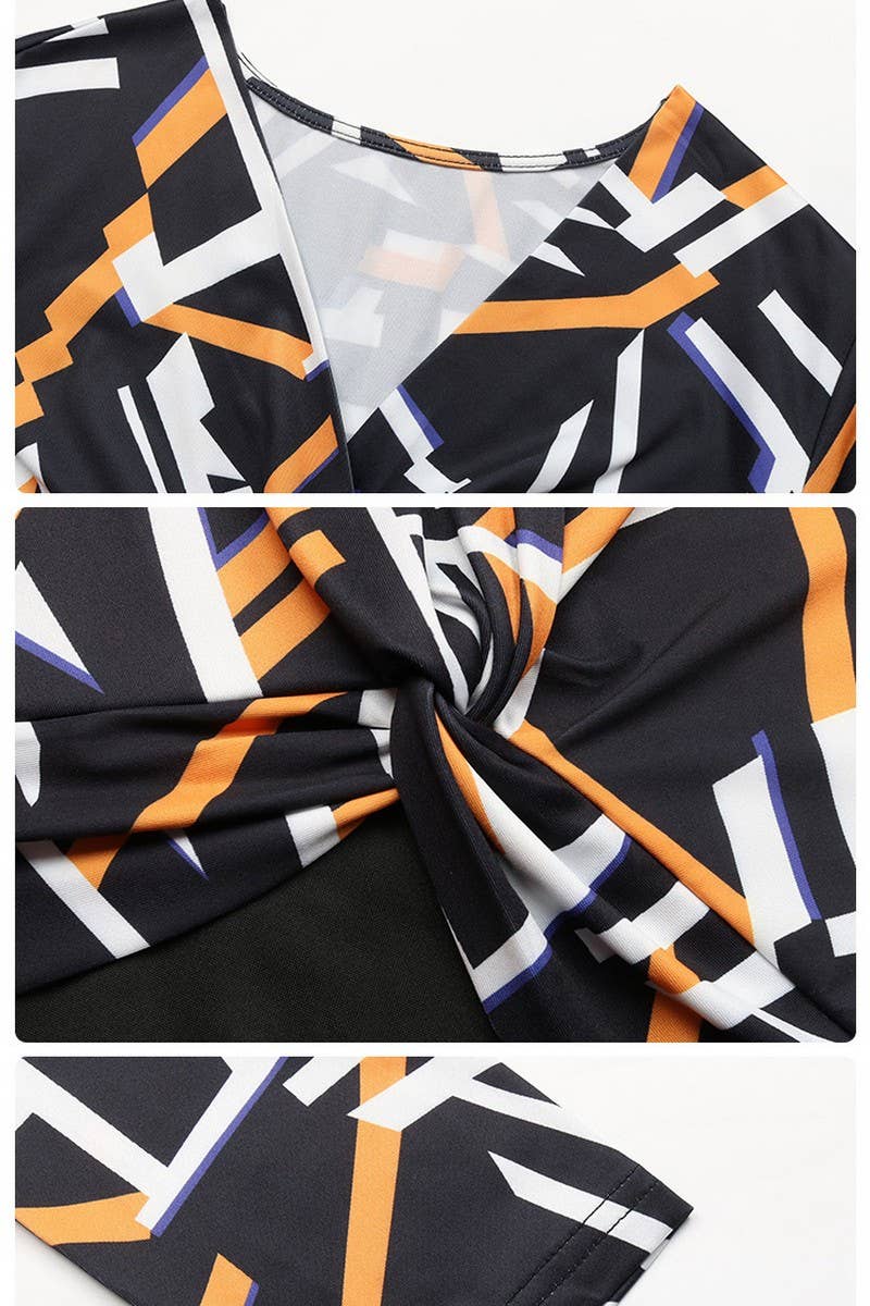 V-NECK HIGH WAIST GEOMETRIC PATTERN HIP DRESS