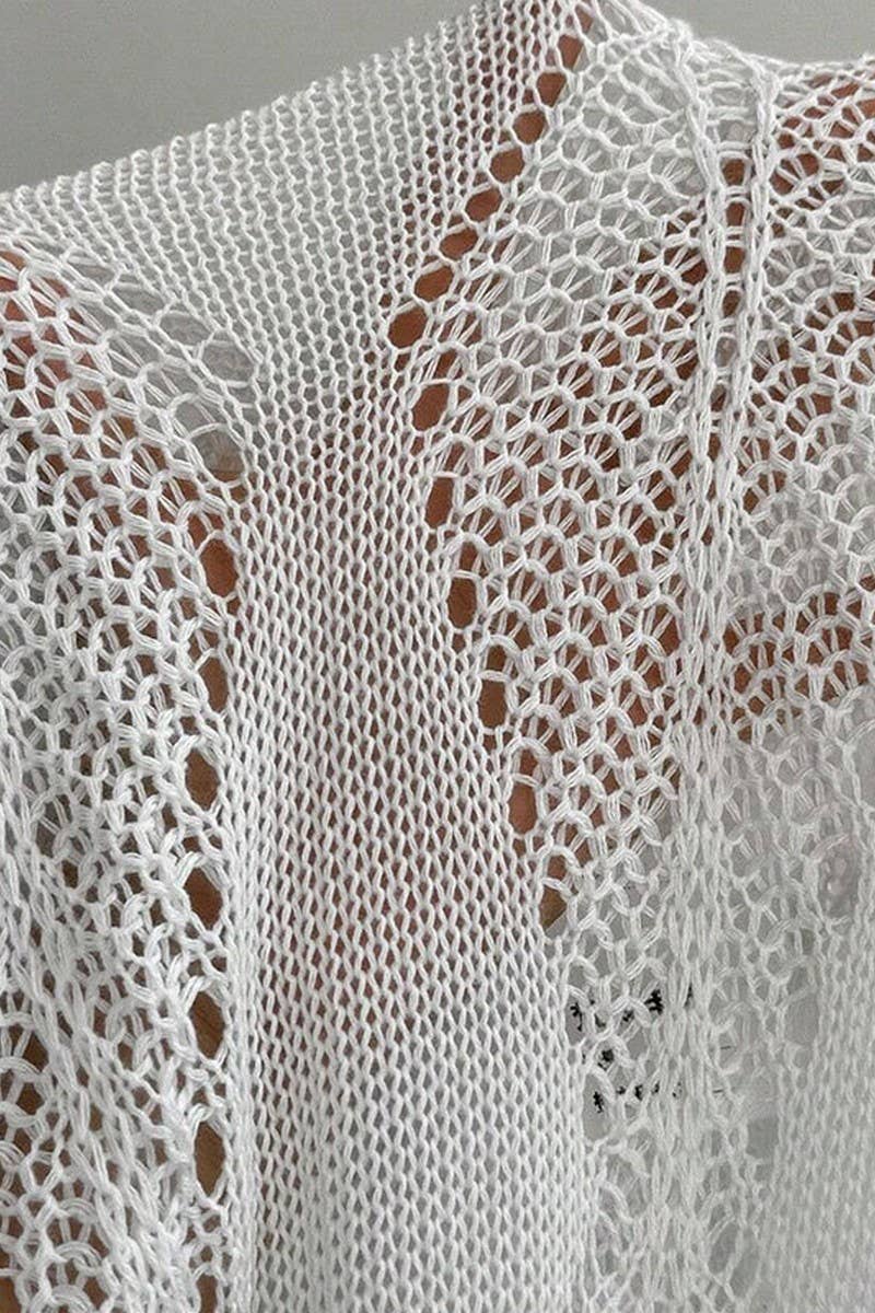 KNITTED HOLLOW SUSPENDER BIKINI COVER UP DRESS