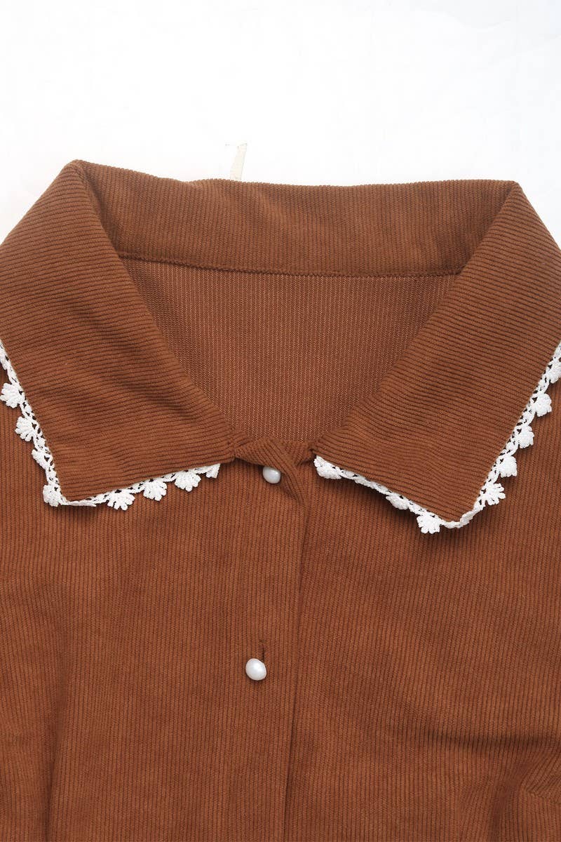 AUTUMN AND WINTER LAPEL STITCHING LACE DRESS