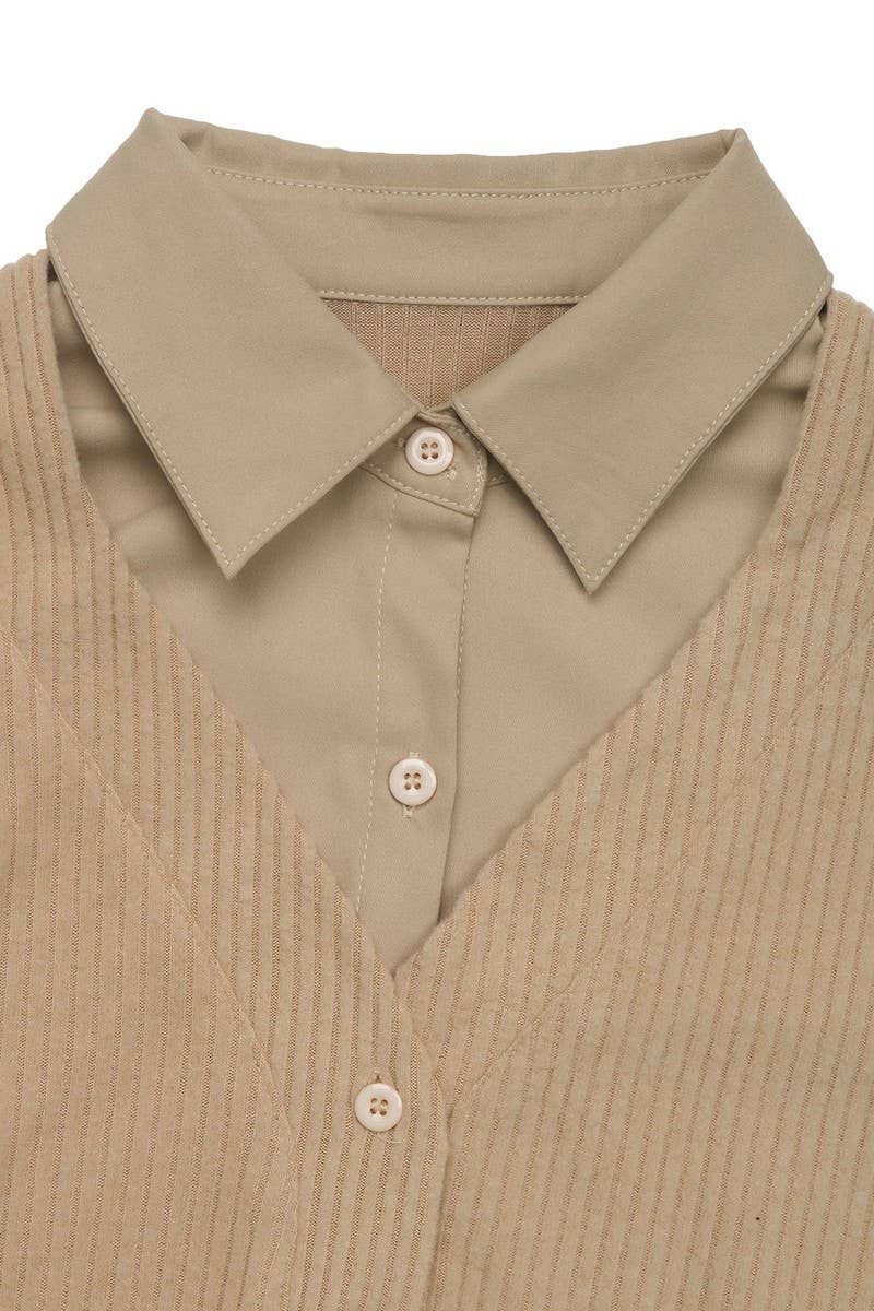 SOLID COLOR LAPEL LONG SLEEVE FAKE TWO PIECE DRESS