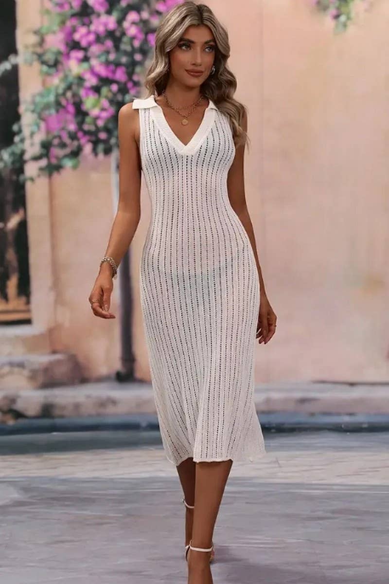SPRING AND SUMMER SOLID COLOR LAPEL SWEATER