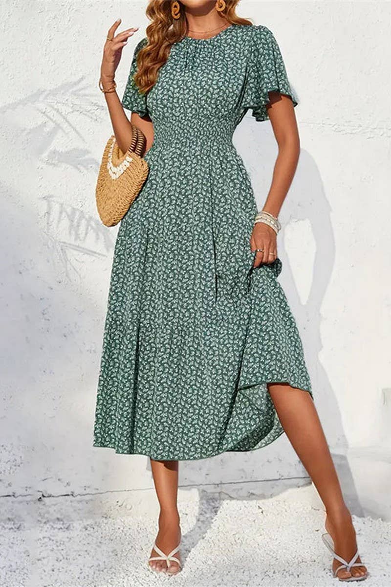 SPRING AND SUMMER FLORAL WAIST CAKE DRESS