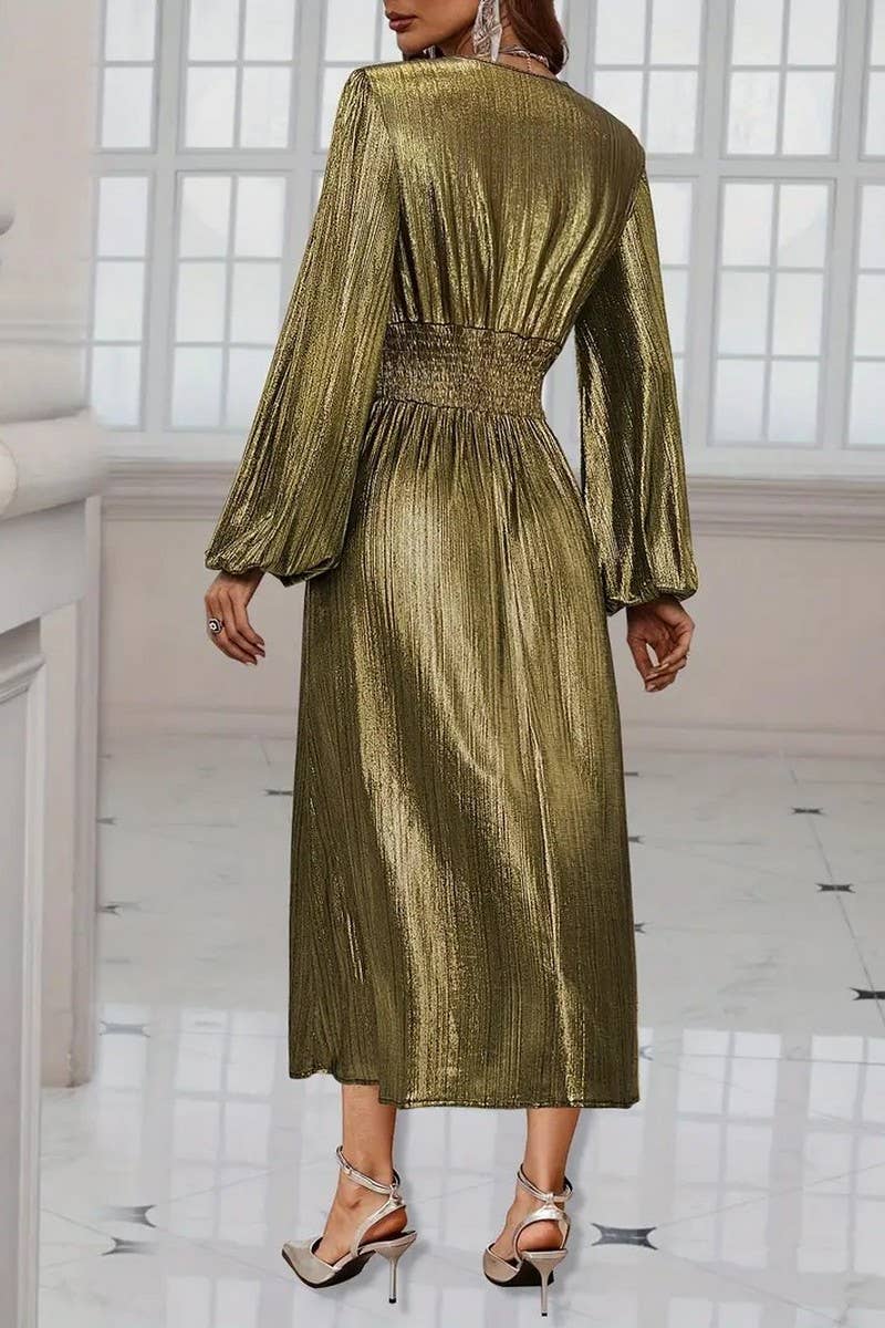 ELEGANT AND STYLISH PLEATED SLIT EVENING DRESS
