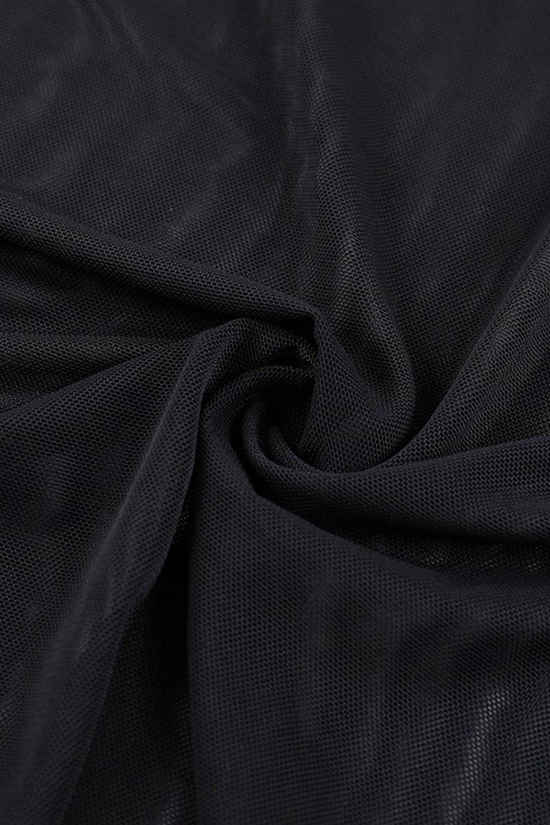 SEXY MESH RUFFLE TIE STRAP SLIT BODYCON DRESS