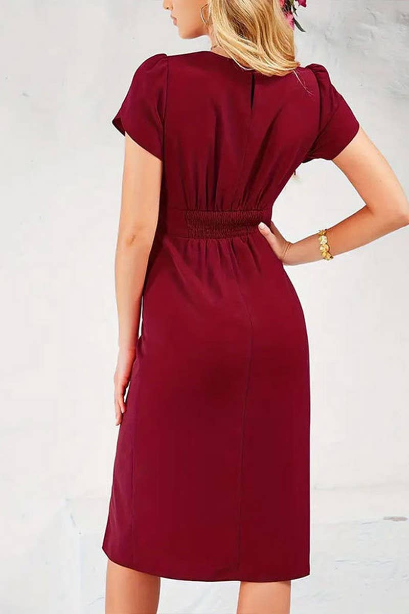 SUMMER ELASTIC WAIST SLIT COMMUTER HIP SKIRT