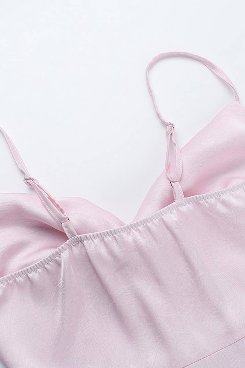 SATIN PLEATED SLIT FIT HIP SLING DRESS