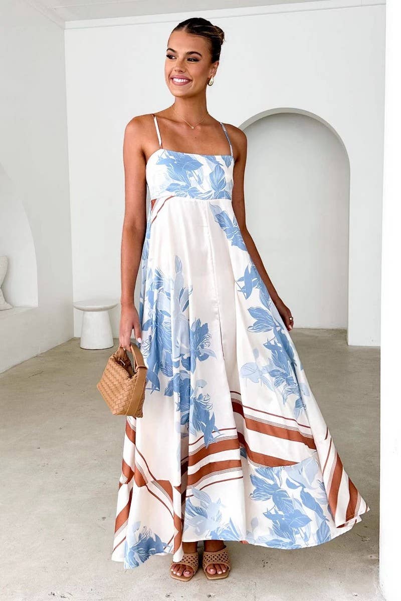 BACKLESS SPAGHETTI STRAP FLORAL MAXI DRESS