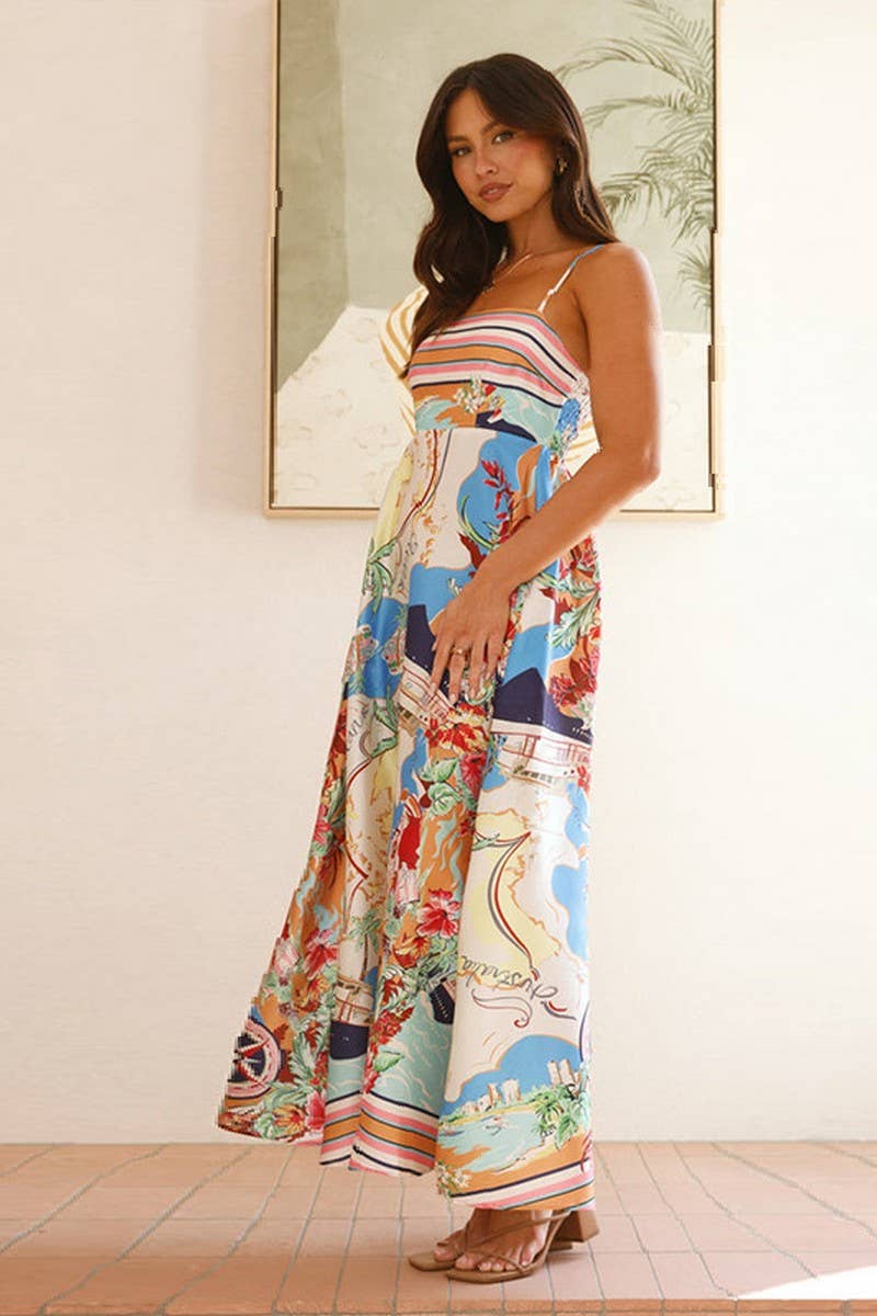 VACATION STYLE PAINTED FLOWY MAXI DRESS