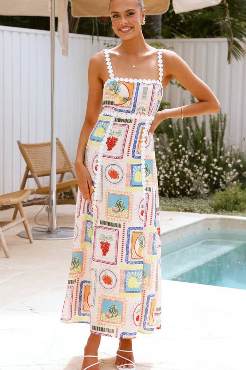 OFF SHOULDER RUFFLE TRIM FLORAL CAMI DRESS