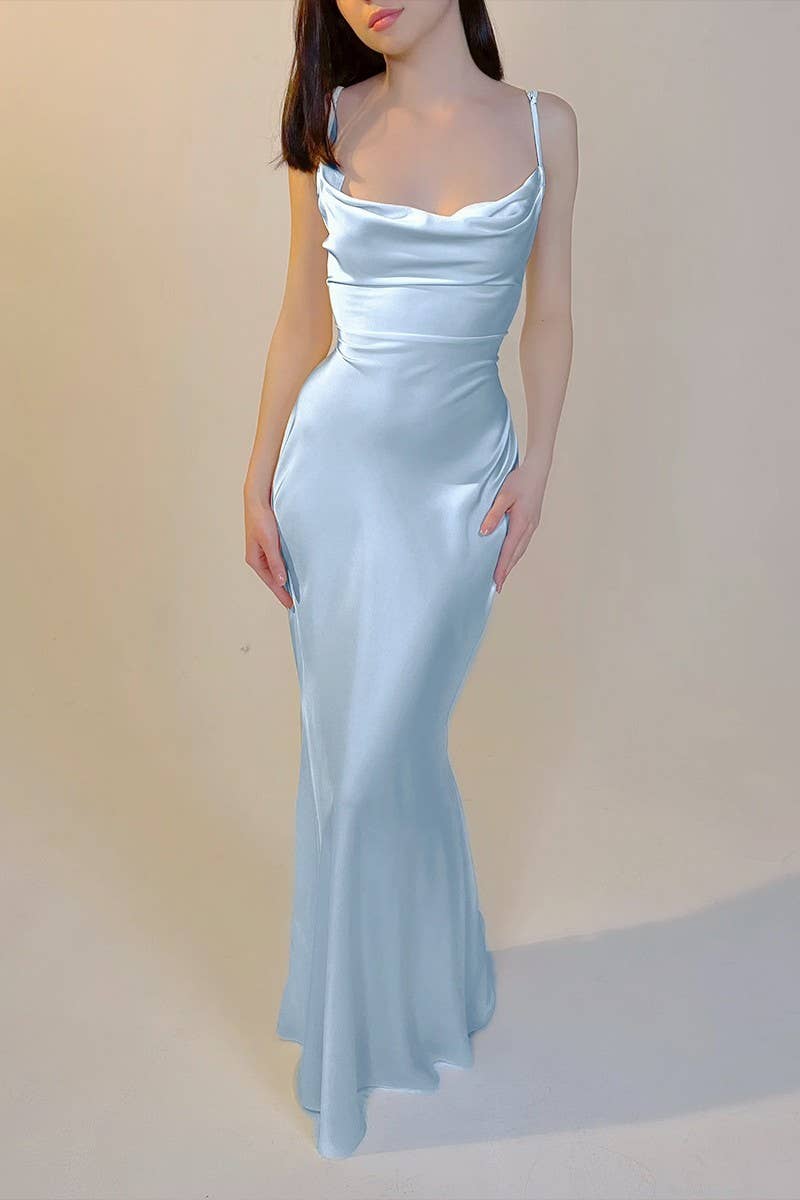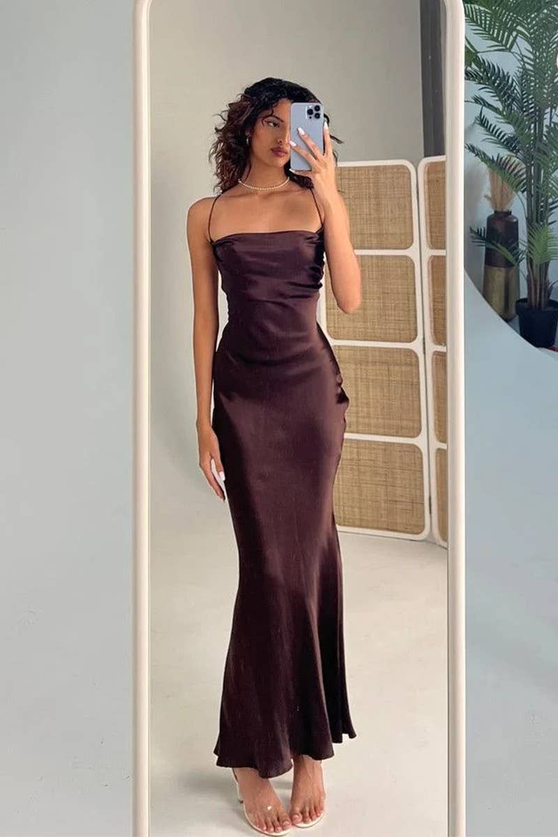 SOLID COLOR BACKLESS TIE-BACK MAXI DRESS