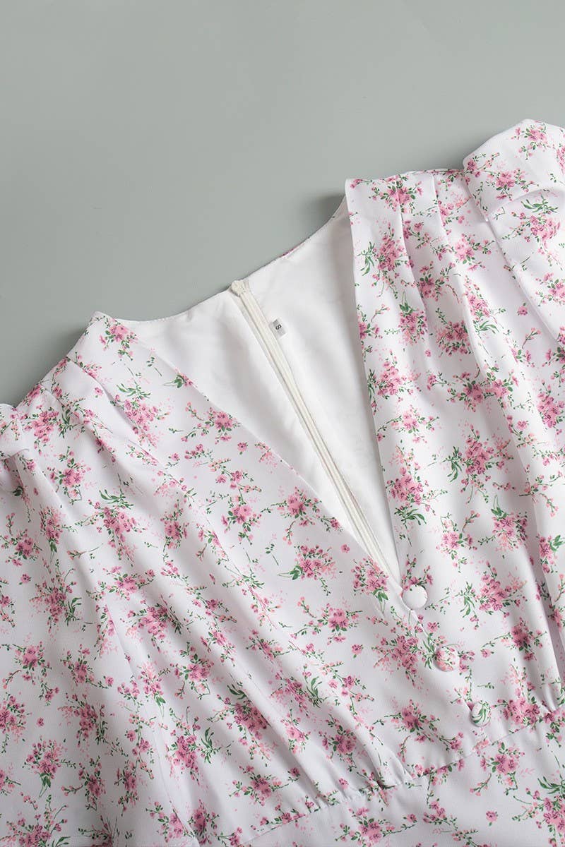 V-NECK HIGH WAIST FLORAL MAXI SKIRT