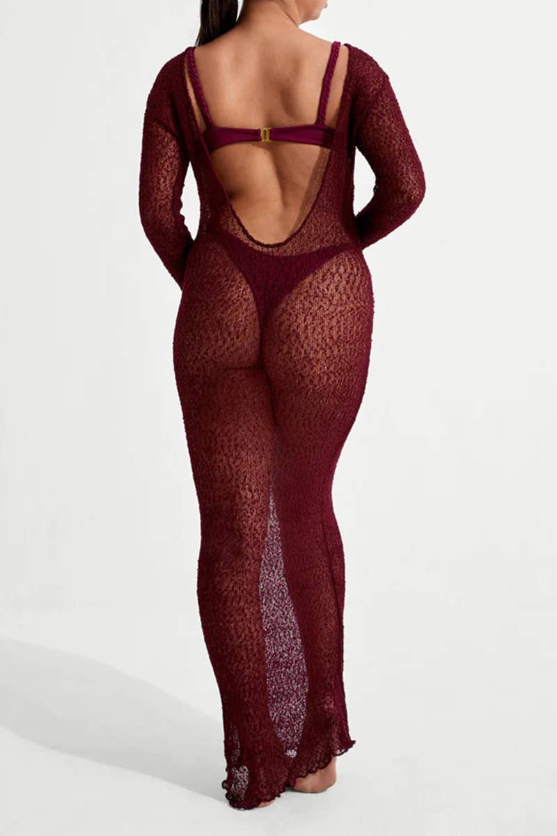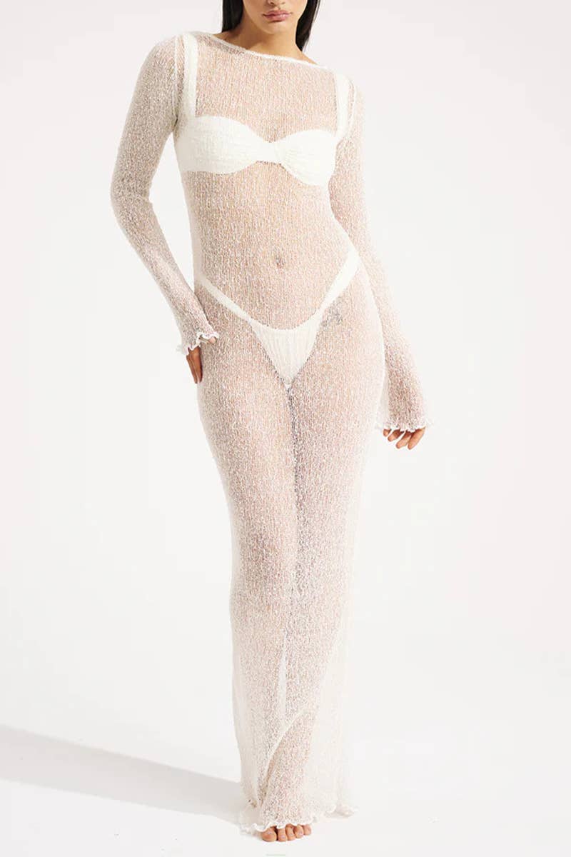 SLIM FIT HOLLOW OUTERWEAR KNITTED DRESS BLOUSE