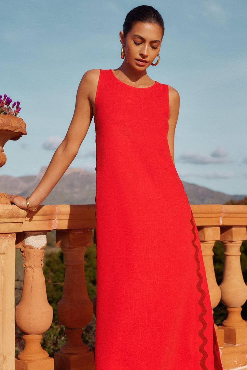 SOLID SLEEVELESS LACE PANEL SLIT MIDI DRESS