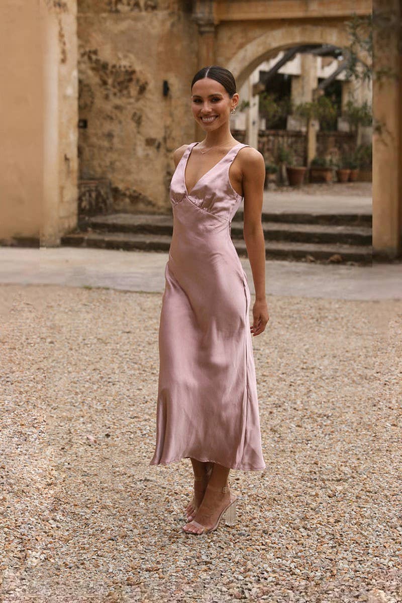 DEEP V BACKLESS SLIM SPAGHETTI STRAP MIDI DRESS