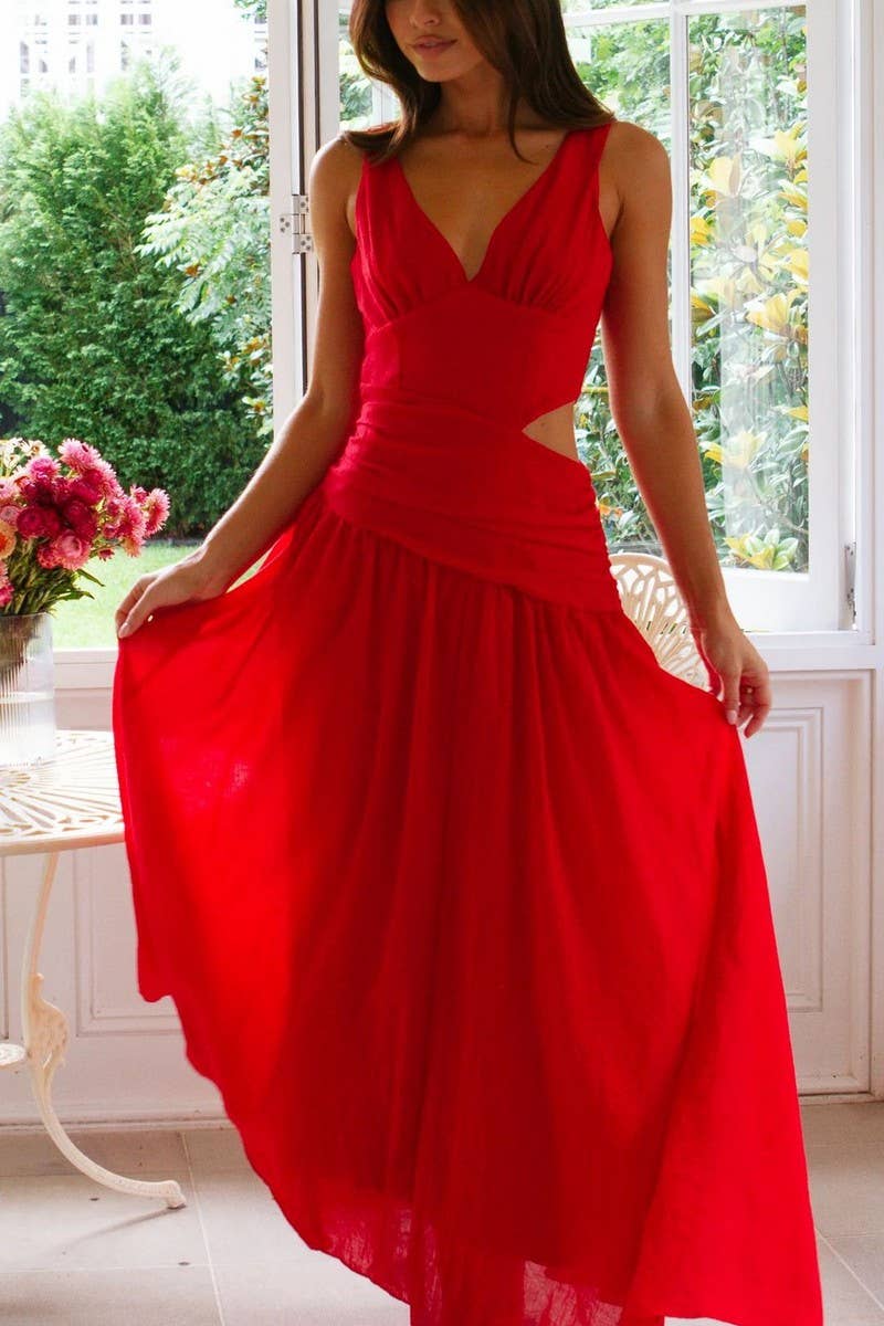V-NECK SLEEVELESS COLORBLOCK MAXI FLARE DRESS