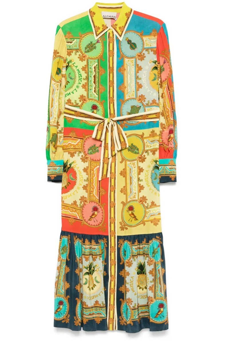 NEW PRINTED LANTERN SLEEVE SINGLE BREASTED DRESS
