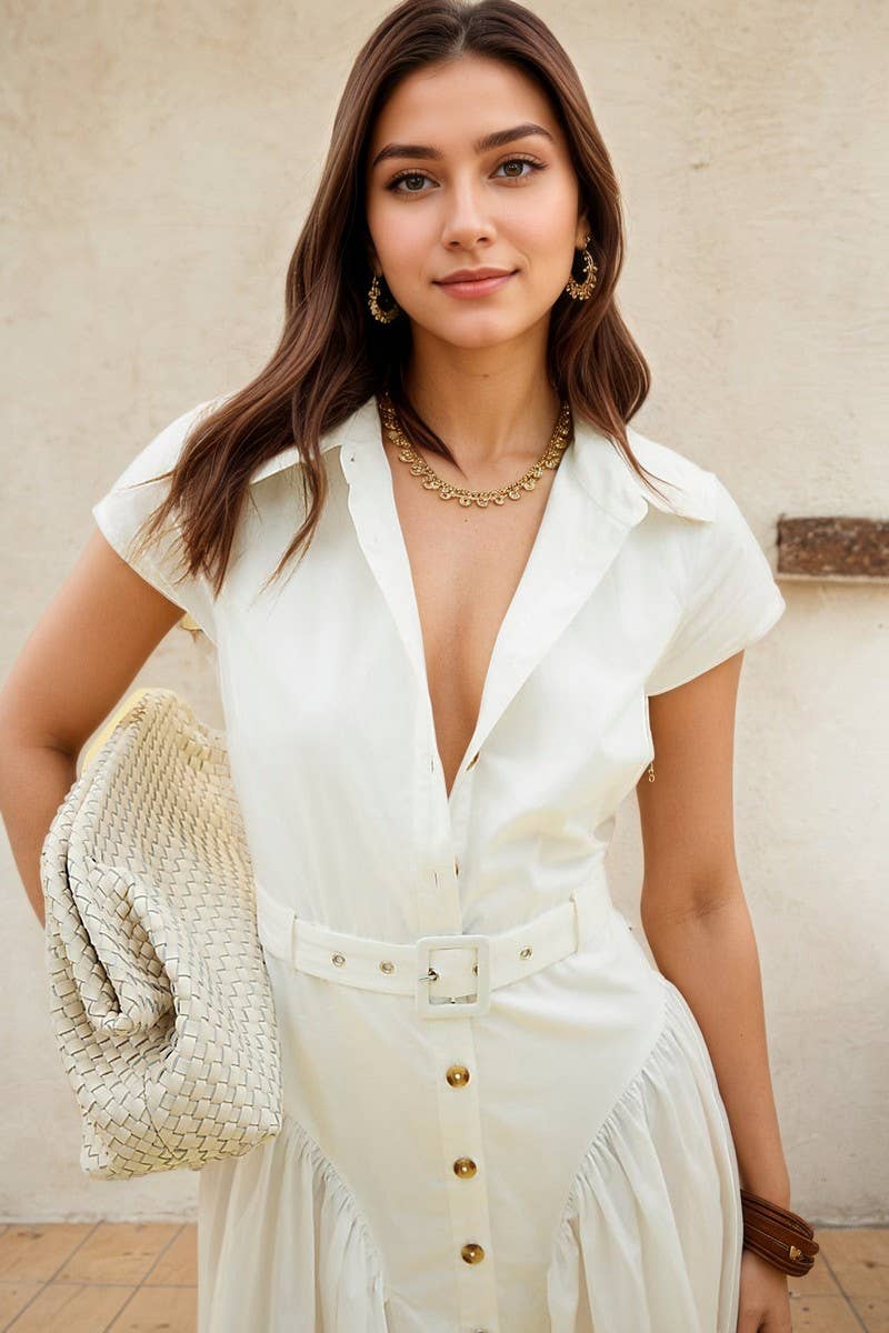 COLLARED BUTTON FRONT SLIM FIT SHIRT MAXI DRESS