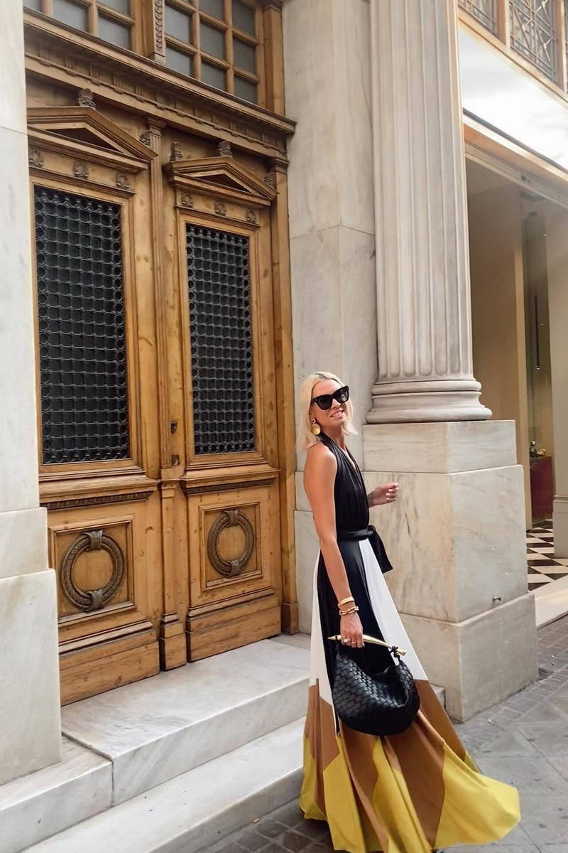 COLORBLOCK BACKLESS TIE STRAP MAXI DRESS