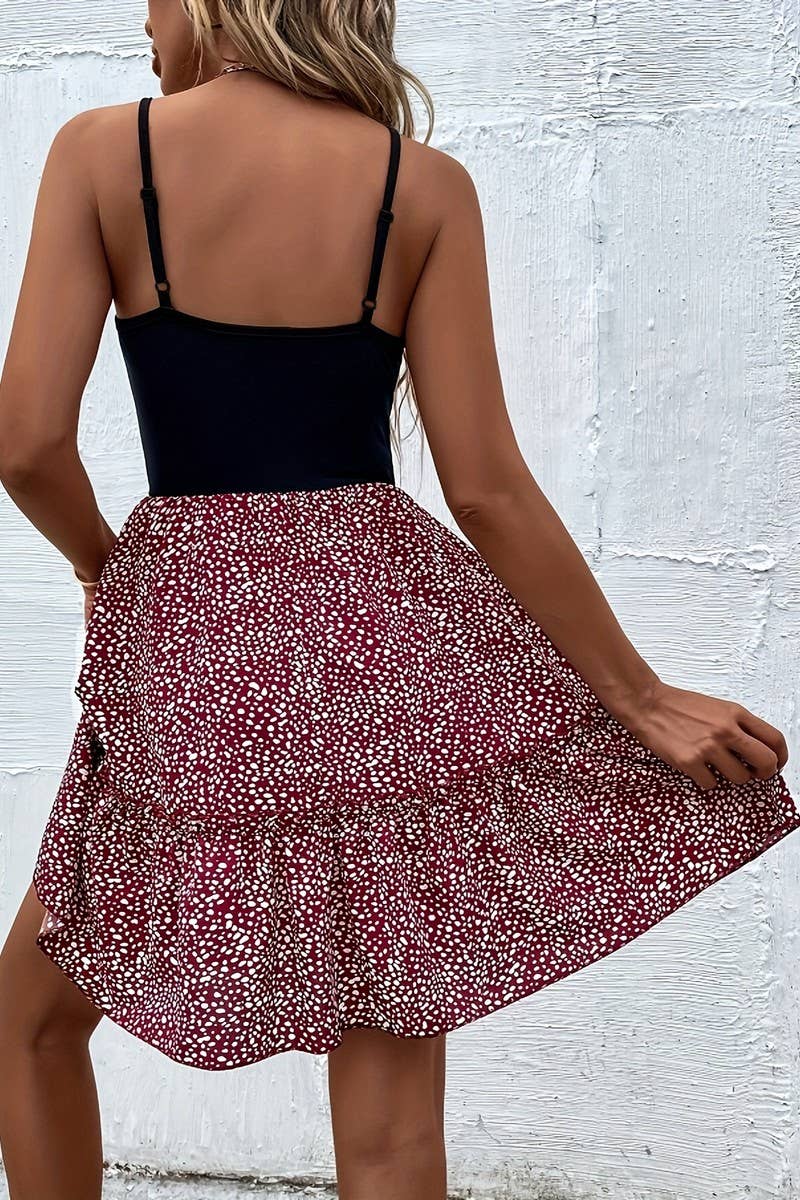 ELEGANT CONTRASTING SUSPENDER DRESS