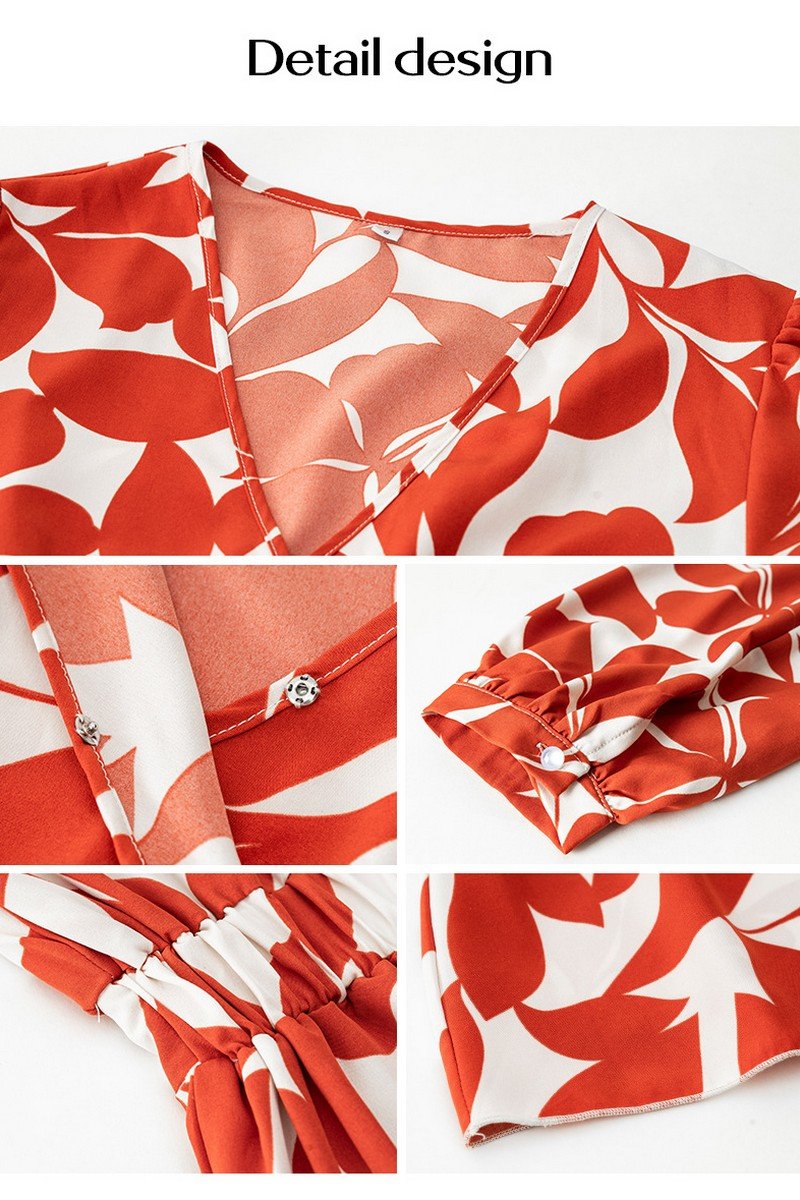 WOMEN WRAP STYLE PATTERNED LONG SLEEVE CAKE DRESS