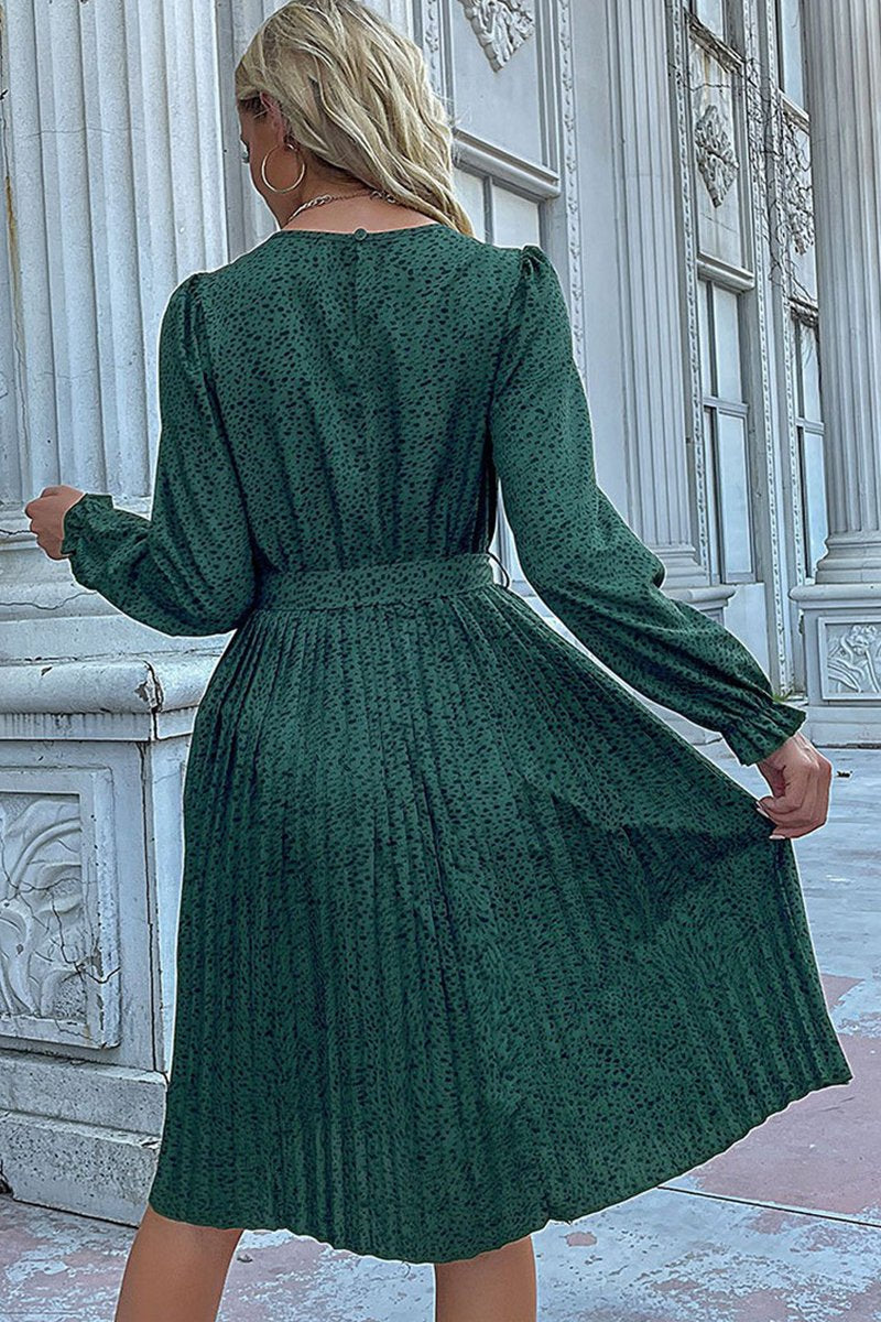WOMEN LEOPARD ANIMAL PRINTING BELTED SWING DRESS 95% POLYESTER, 5% SPANDEX MADE IN CHINA