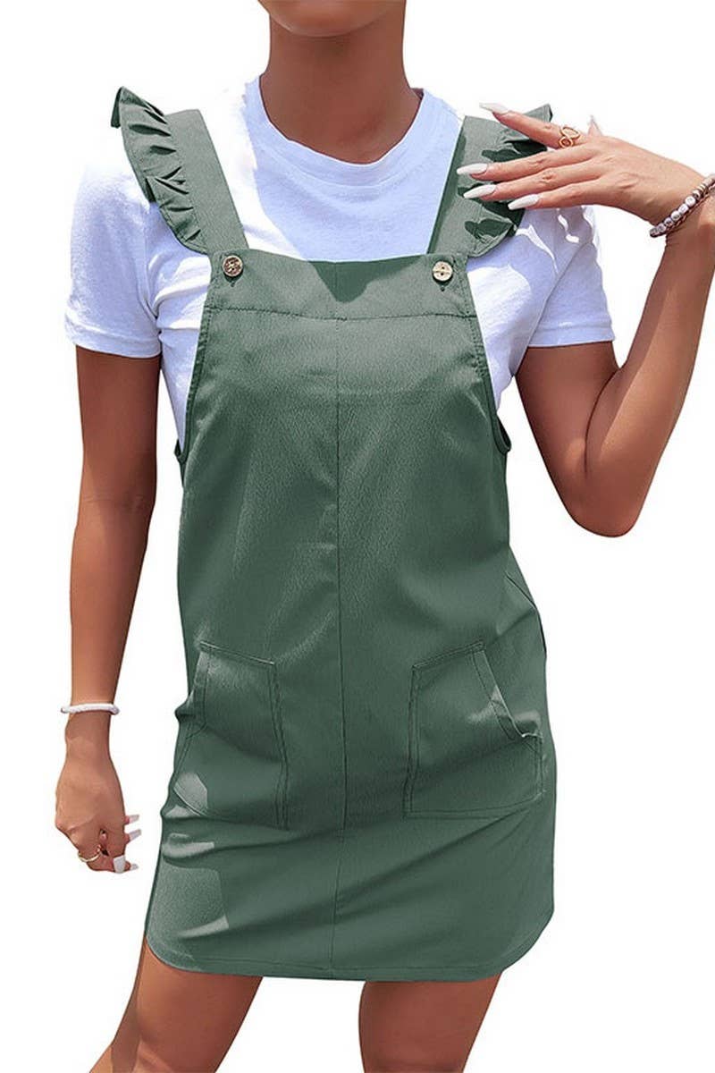 RUFFLED SOLID COLOR SLEEVELESS SHORT DRESS