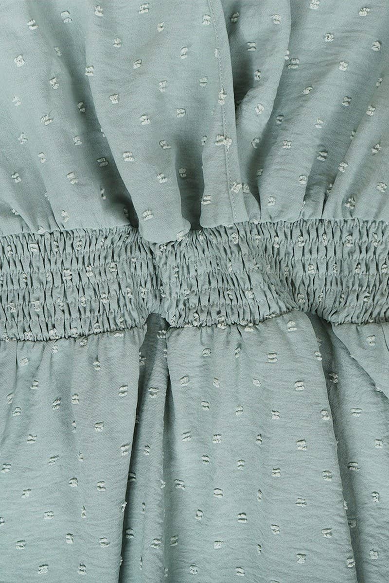 V-NECK PINCHED WAIST JACQUARD SHORT DRESS