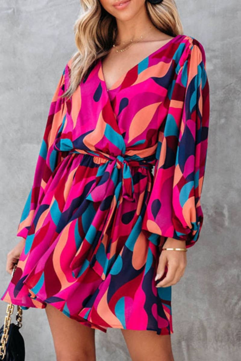 V-NECK LONG SLEEVE LACE-UP DRESS SHORT