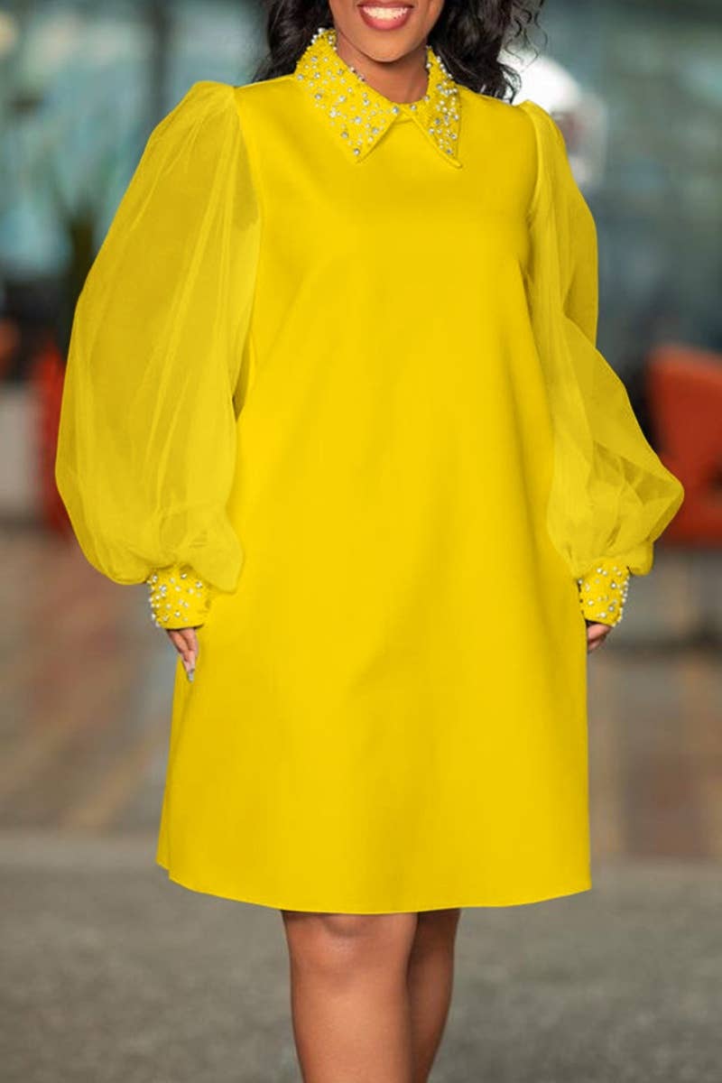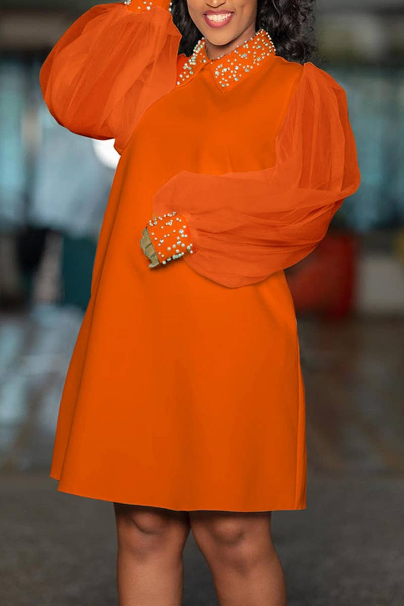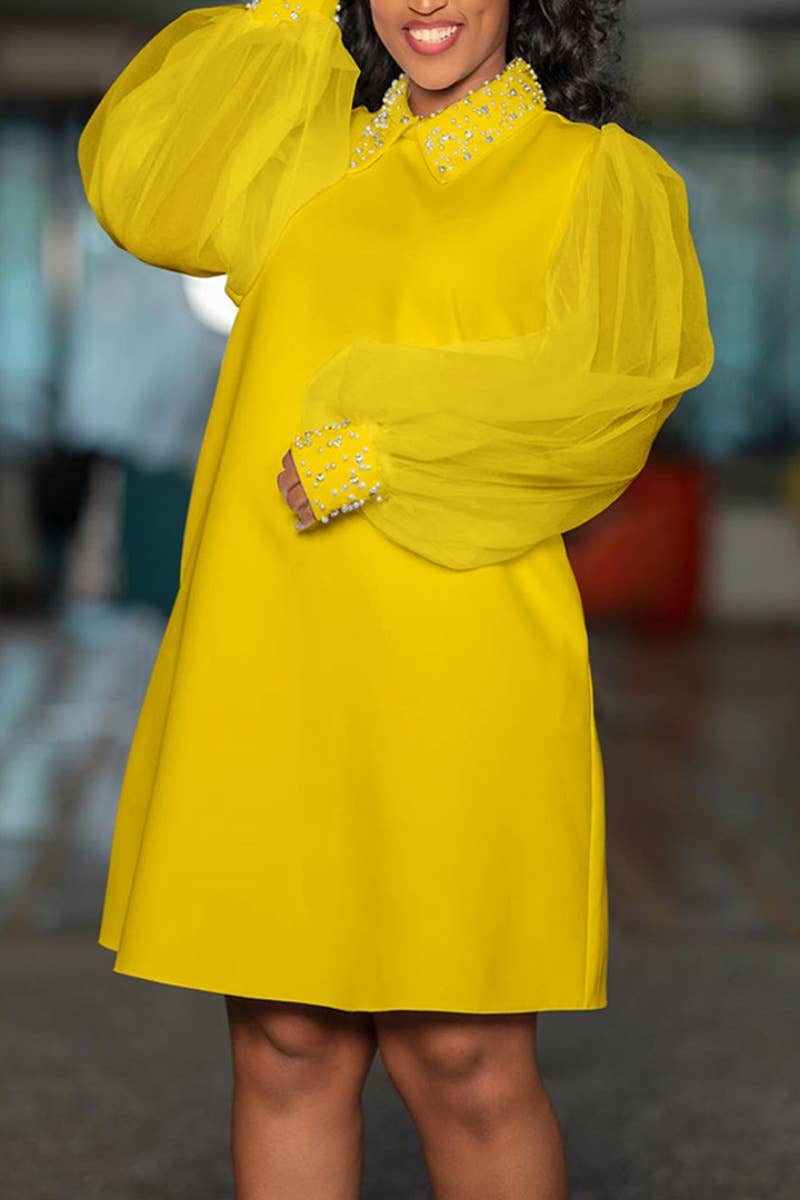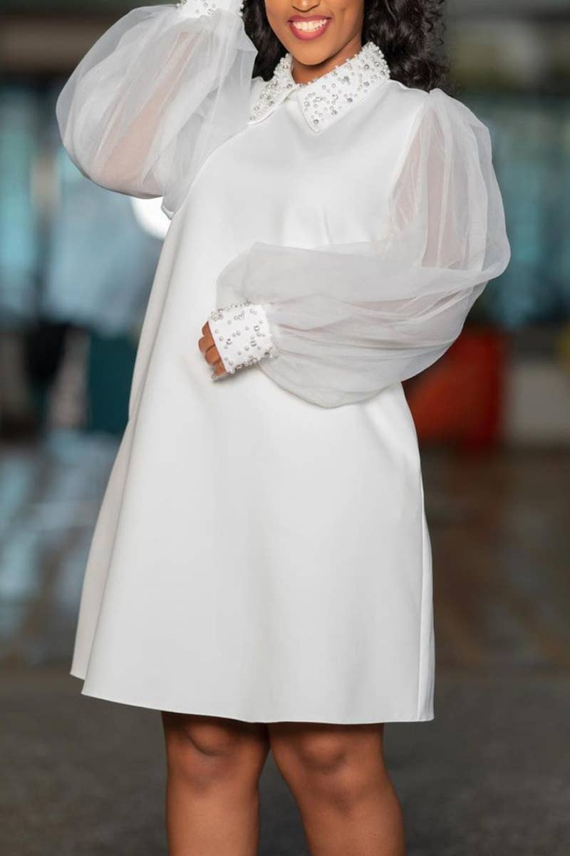 FALL MESH SEE-THROUGH BEADED LONG-SLEEVED DRESS
