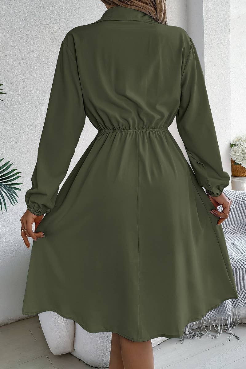 CASUAL BUTTON-DOWN WAIST SHIRT DRESS SHORT