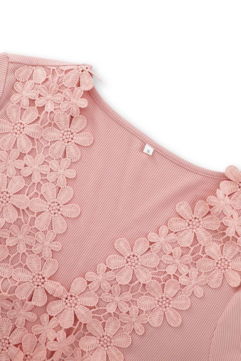 SOLID COLOR V-NECK HIP-HUGGING LACE RIBBED DRESS