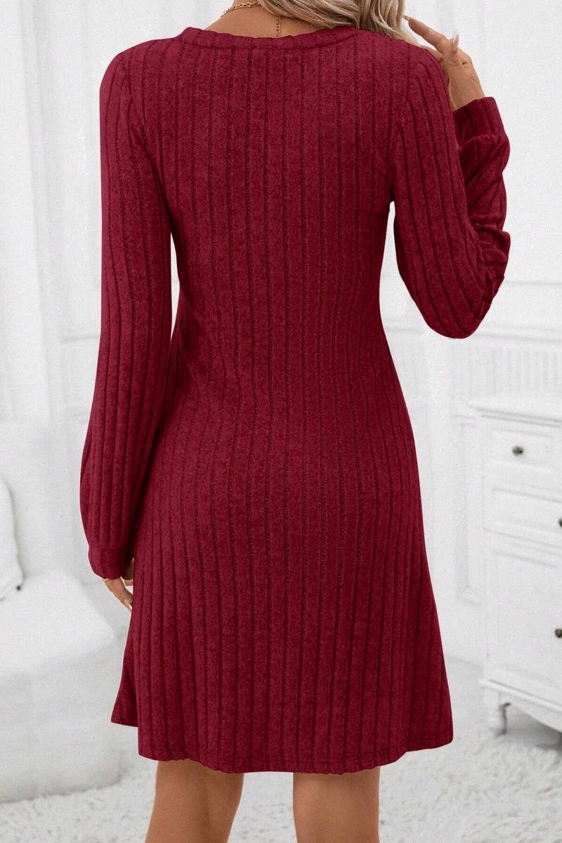 V-NECK BURGUNDY HIGH WAIST FITTED MIDI DRESS