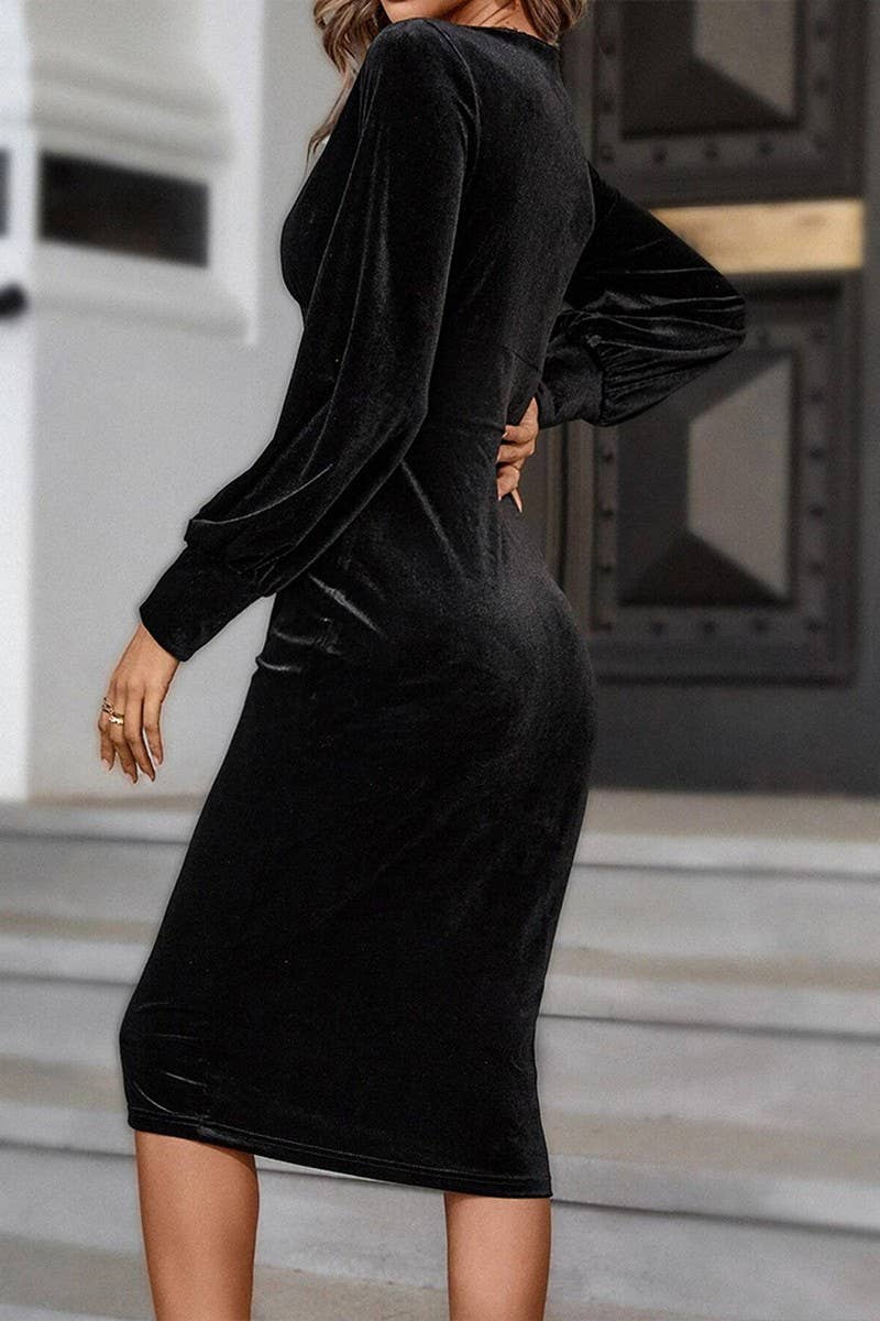 V-NECK WAIST HIP-HUGGING LONG-SLEEVED DRESS