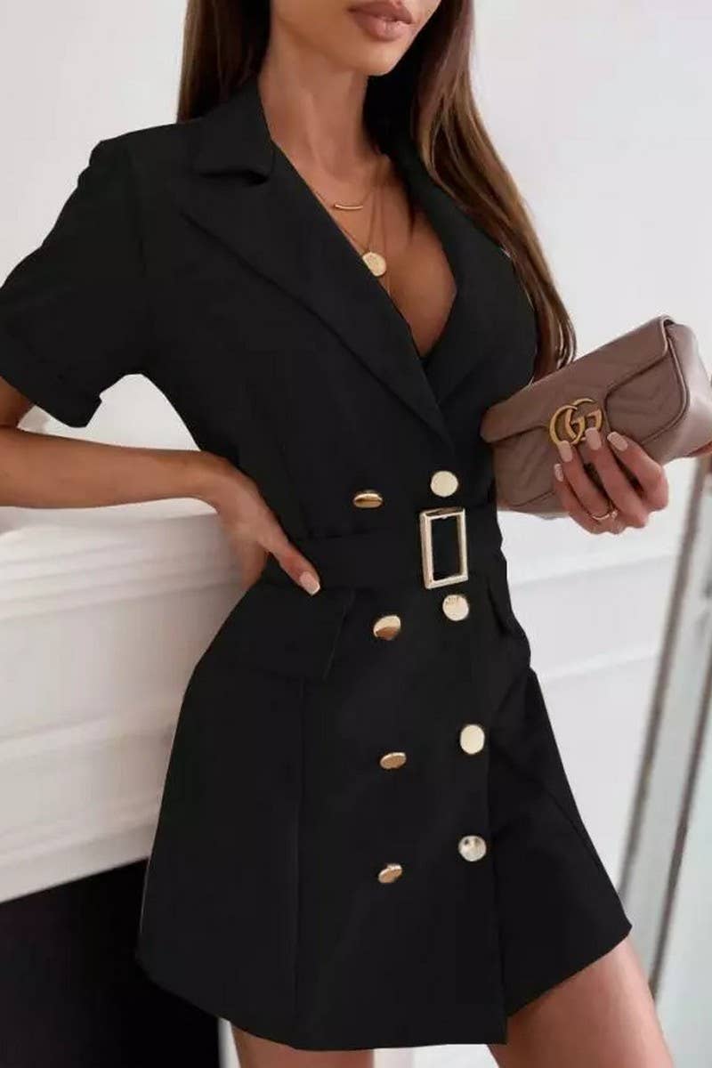 DOUBLE BREASTED BELTED SUIT COLLAR DRESS