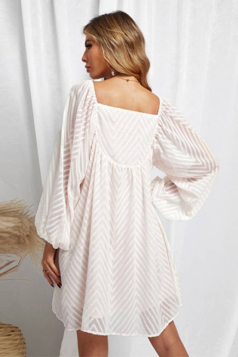 JACQUARD SQUARE COLLAR LANTERN SLEEVE DRESS SHORT
