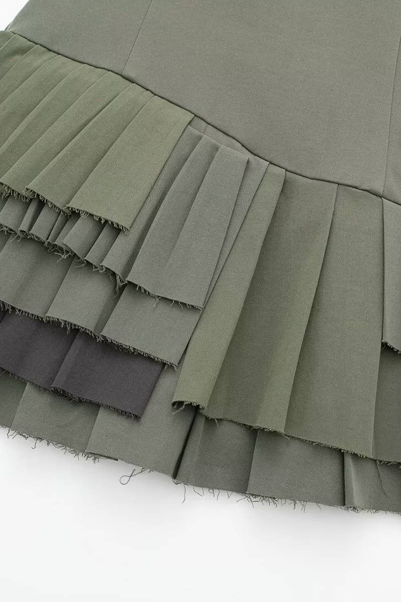 U-NECK SLEEVELESS WAIST RUFFLED SUSPENDER DRESS