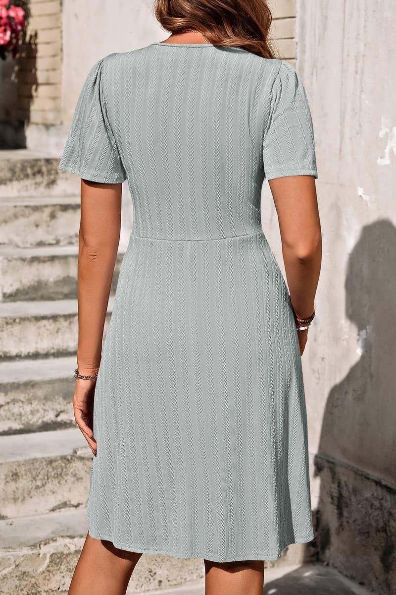 ROUND NECK BUTTON STRETCH SHORT SLEEVE DRESS
