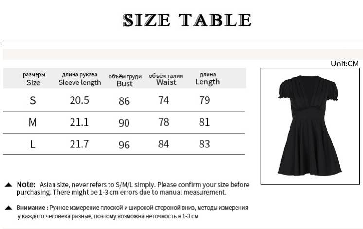 TEMPERAMENT PUFF SLEEVE WAIST V-NECK SEXY DRESS