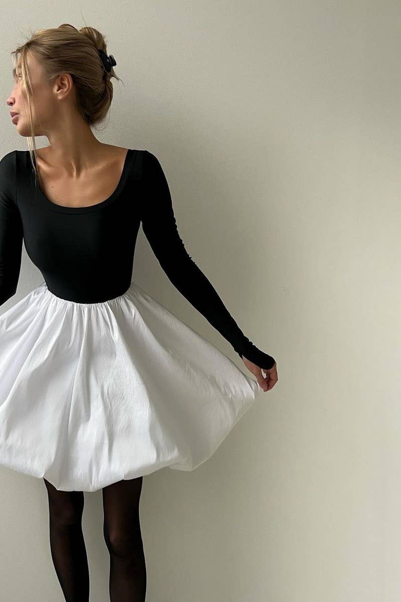SQUARE NECK BALLET FLOWER BUD SKIRT DRESS