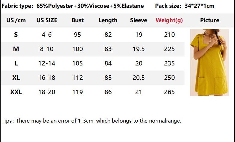 SOLID COLOR SQUARE NECK POCKET SHORT SLEEVE DRESS