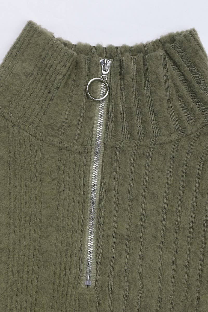 FRENCH STYLE LAPEL ZIPPER LONG SLEEVE DRESS