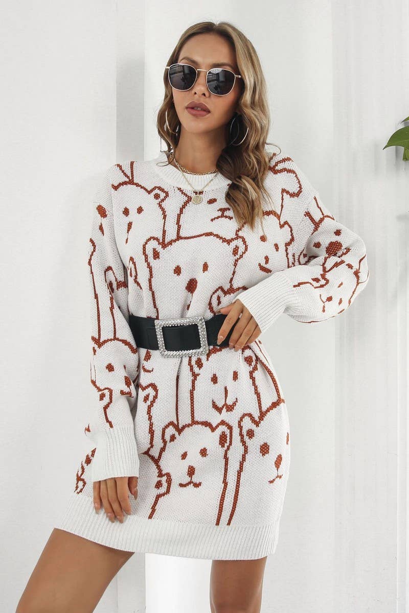 SWEET LOOSE BEAR JACQUARD KNITTED DRESS