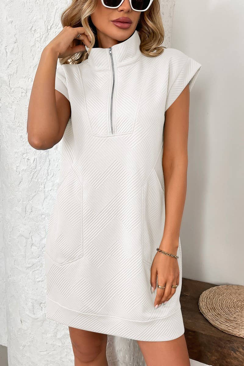 SUMMER LAPEL ZIPPER POCKET LOOSE SHIFT DRESS