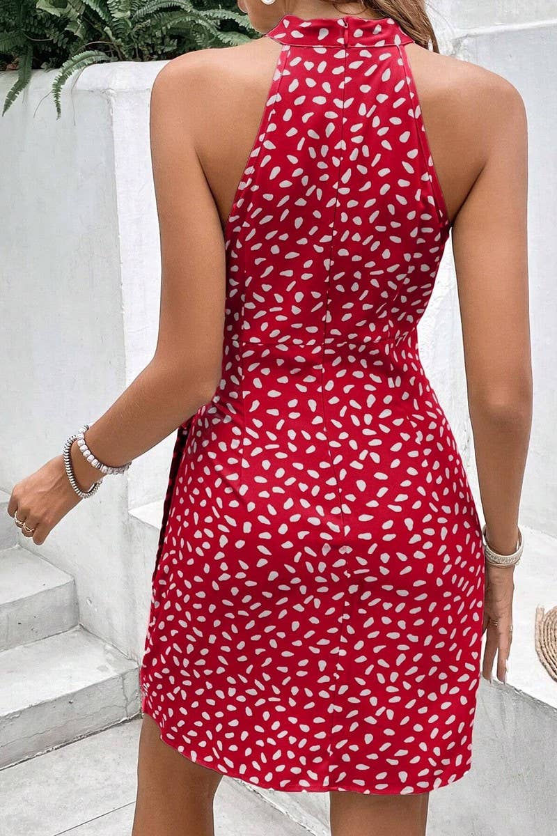 FASHIONABLE HALTERNECK FLORAL PLEATED SHORT DRESS
