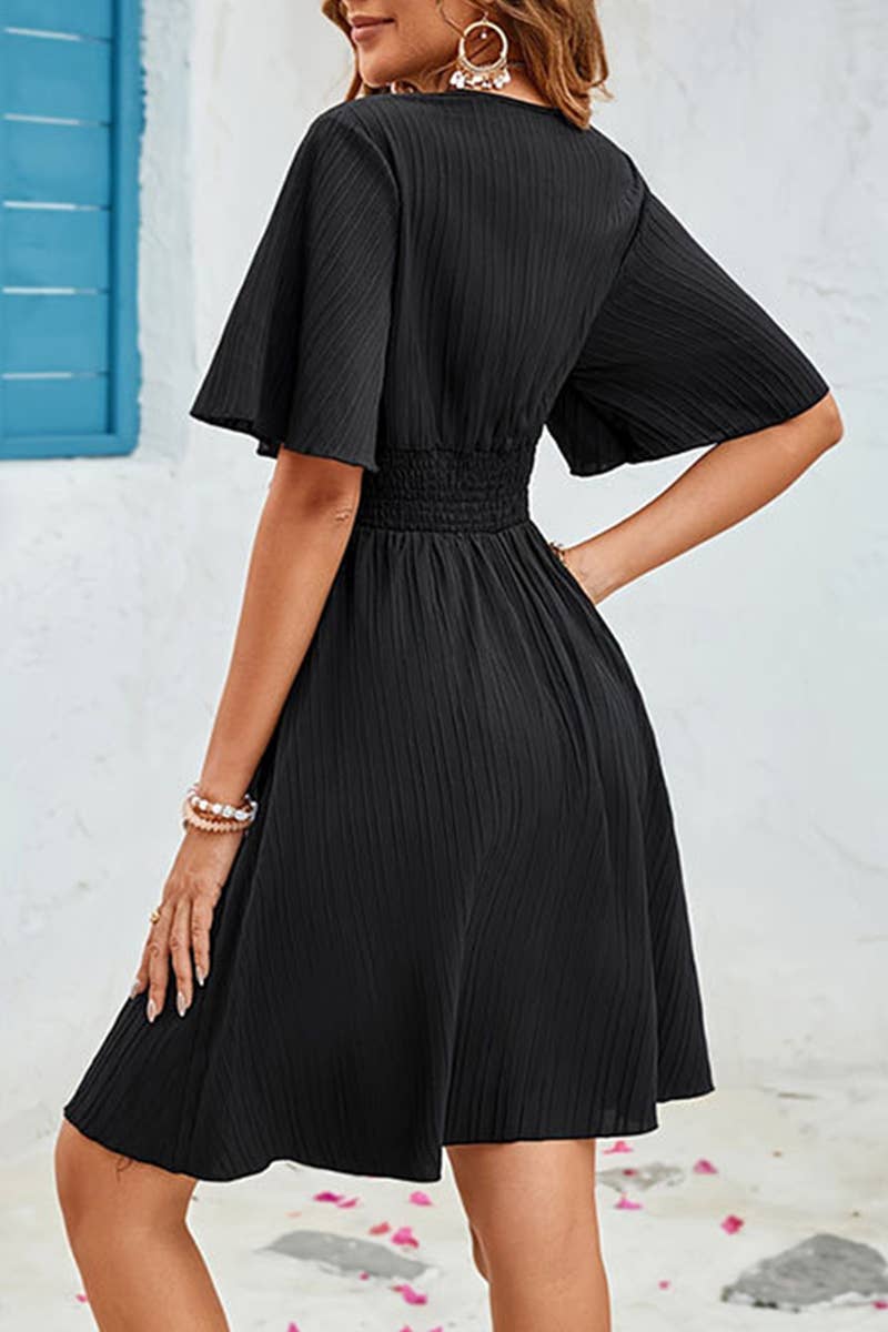 EMBROIDERED LACE TRIM ELASTIC WAIST SHORT DRESS